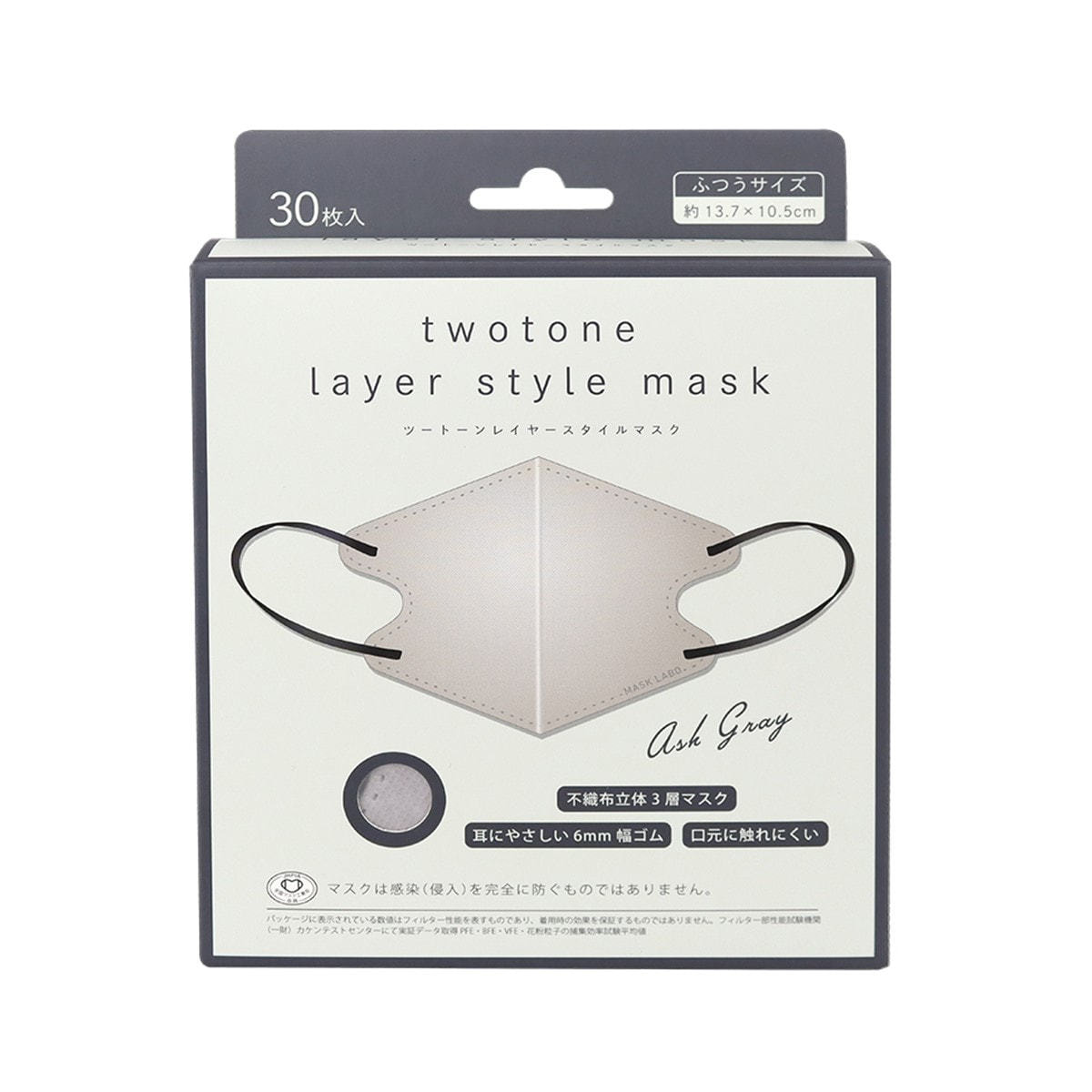 ツートーンレイヤースタイルマスク アッシュグレー 30枚入り