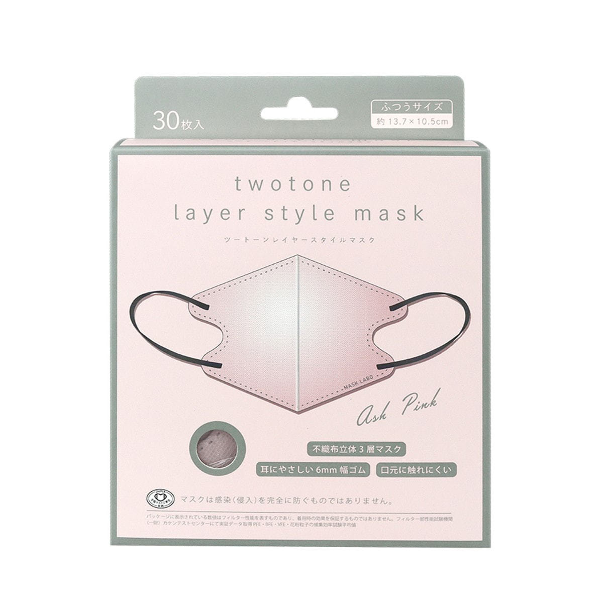 ツートーンレイヤースタイルマスク アッシュピンク 30枚入り