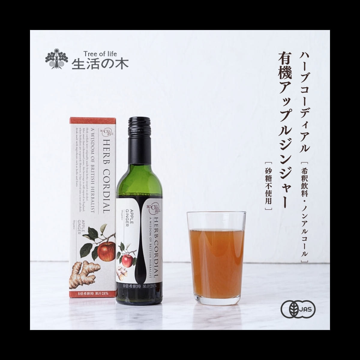 商品名:生活の木 ロックス&トゥリー ハーブコーディアル 有機アップルジンジャー 360ml
